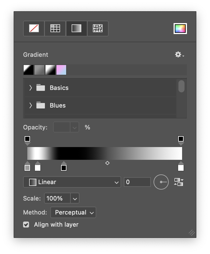 Ensuite, avec l’outil dégradé, créez un dégradé similaire à l’image ci-dessous. Regardez quelques textures de verre roseau pour référence.