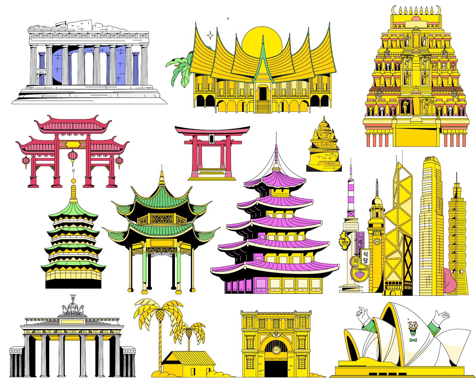 La genèse de ce projet ambitieux a commencé avec une vision claire : créer des illustrations en couleurs plates, basées sur des personnages, qui trouvent un écho auprès du public mondial de Scoot. Des croquis initiaux aux œuvres d’art vectorielles finales, chaque illustration a reçu une personnalité et un style distincts, s’affranchissant du banal pour célébrer la diversité et le dynamisme des destinations mondiales de Scoot.