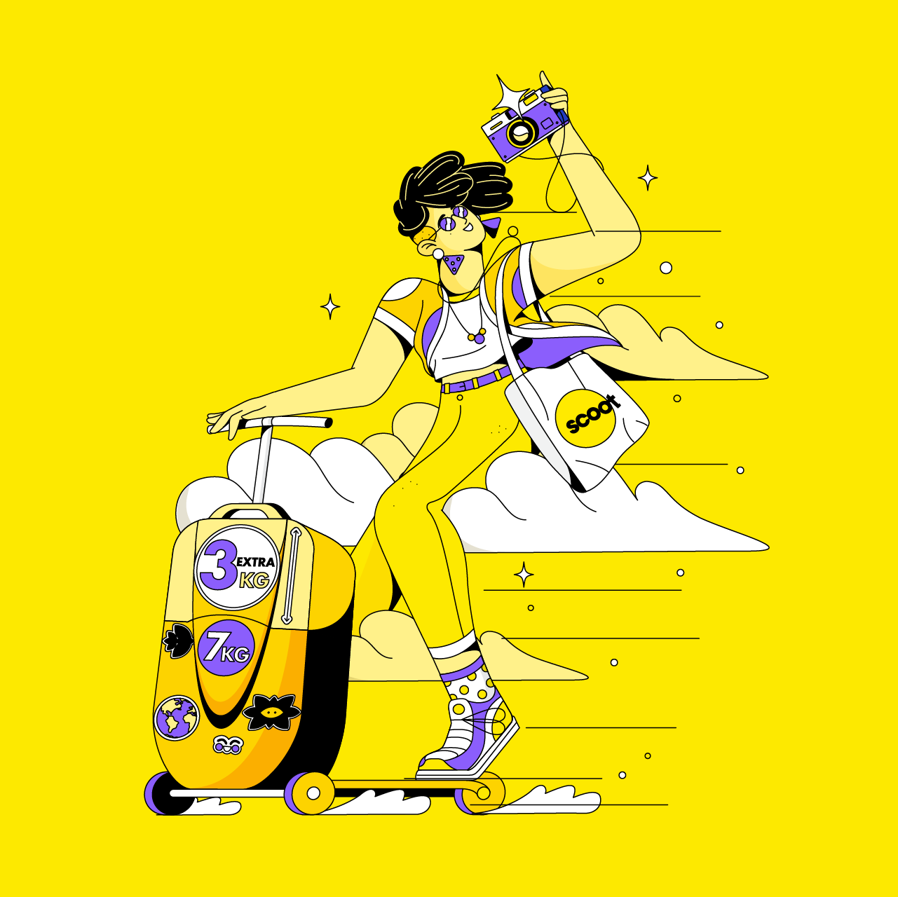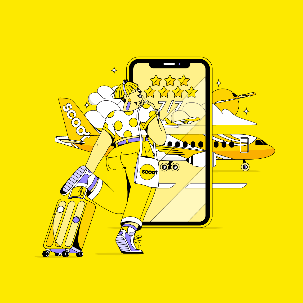 Plongez dans le monde vibrant de Scoot Airlines à travers des variations d’illustrations et d’animations qui donnent vie à la joie de voyager. Découvrez un design et une narration attrayants dans cette campagne unique.